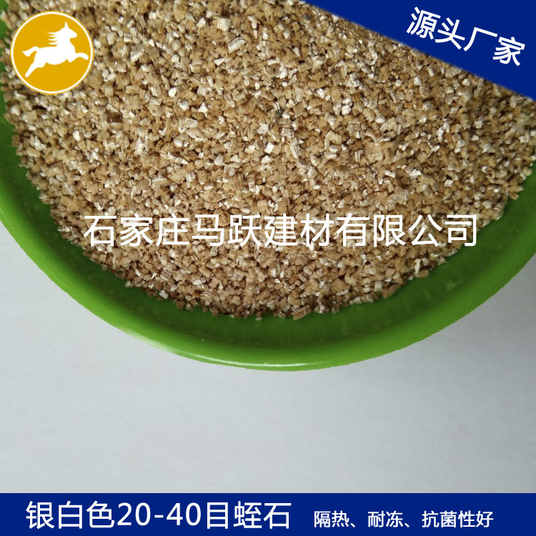 蛭石具有隔熱、耐凍、抗菌、防火、吸水、吸聲等優(yōu)異性能,在800~1000℃下焙燒0.5~1.0分鐘,體積可迅速增大8~15倍,最高達30倍。膨脹后的比重50-200kg/m3,顏色變?yōu)榻瘘S或銀白色,生成一種質(zhì)地疏松的膨脹蛭石。